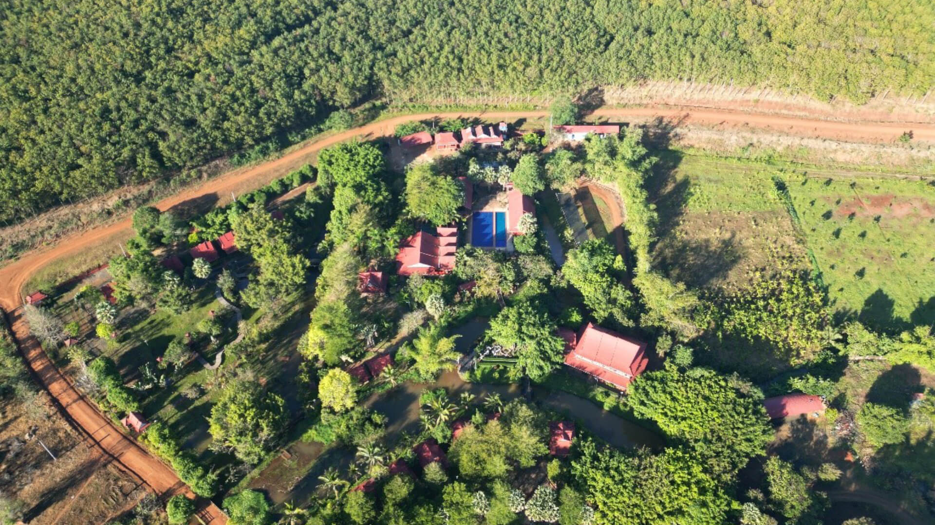 Phum Khmer Resort is located just south of Banlung, 2.3 km from the national road 78. Set in a peaceful green valley, the resort is surrounded by trees, flowers, ponds, and streams — a quiet paradise where families and friends can relax, take their time, and enjoy nature together.